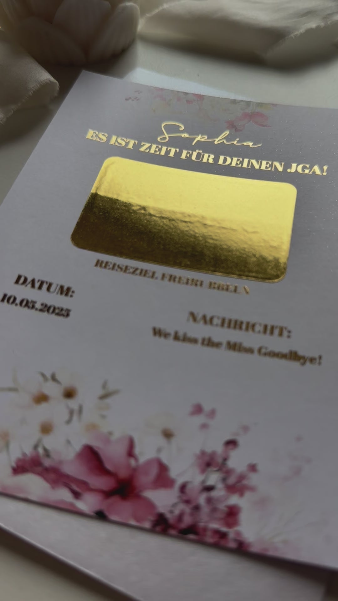 Einladung zum JGA - JGA Gutschein • Geschenk zum JGA • Reise verschenken • Rubbelkarte mit Goldfolie A6 Pastelltraum