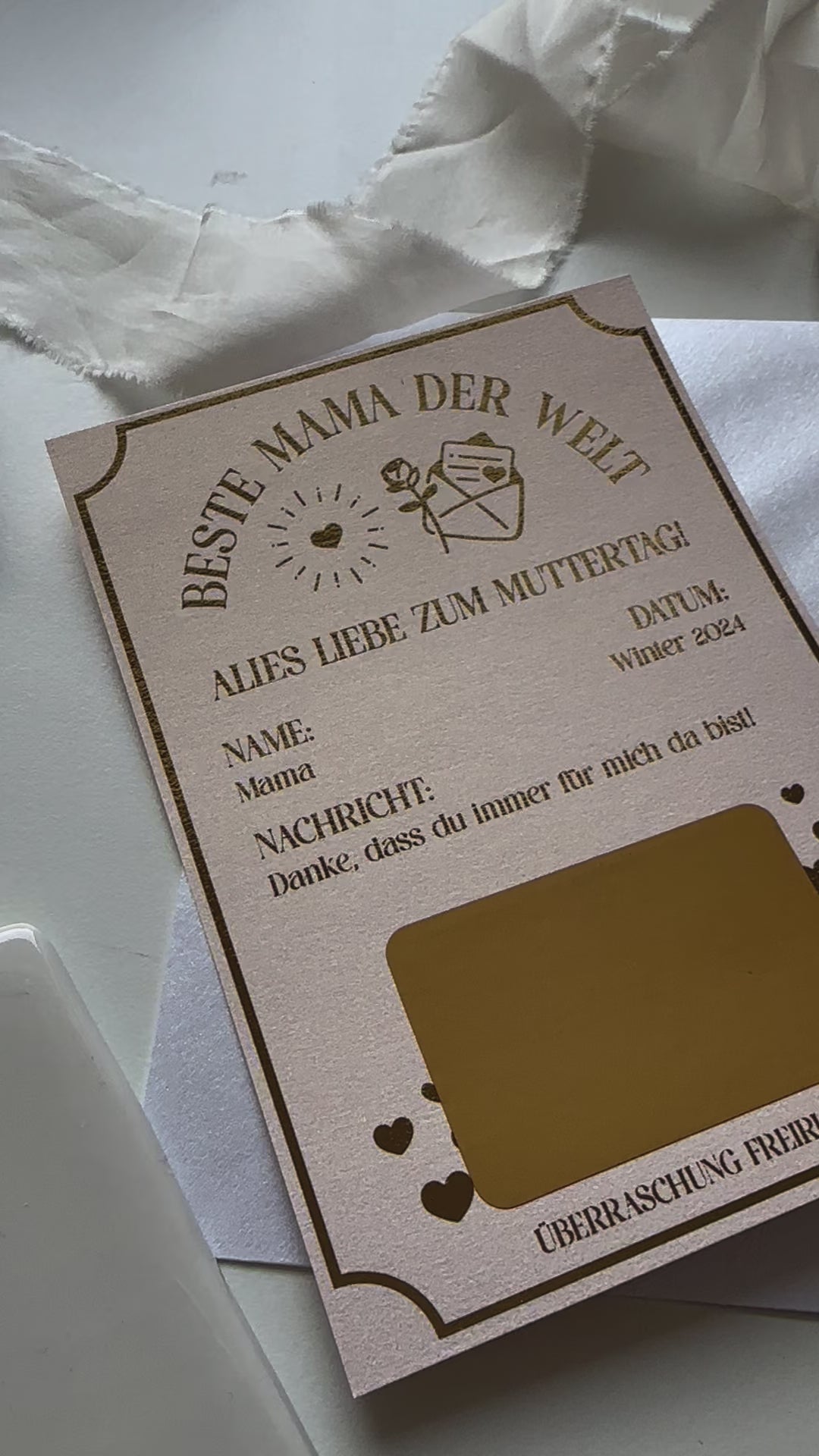 Muttertag Gutschein Personalisierbar PERLMUTT inkl. Umschlag | Rubbelkarte | Geschenk | Muttertagsgeschenk | Überraschung | Ticket